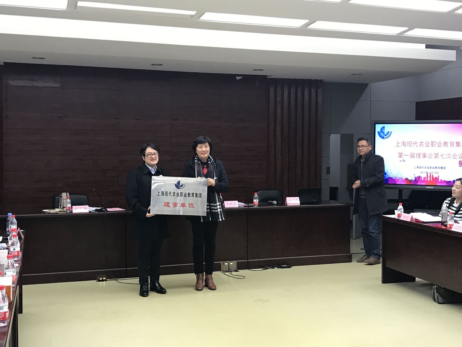 2017年12月19日下午,上海现代农业职业教育集团第一届理事会第七次会议在上海市农业广播电视学校104会议室召开。上海农林职业技术学院副院长张佳敏、职教集团秘书长王彤光出席会议,职教集团各理事单位代表参加了会议,会议由集团秘书处负责人宋常英主持。
