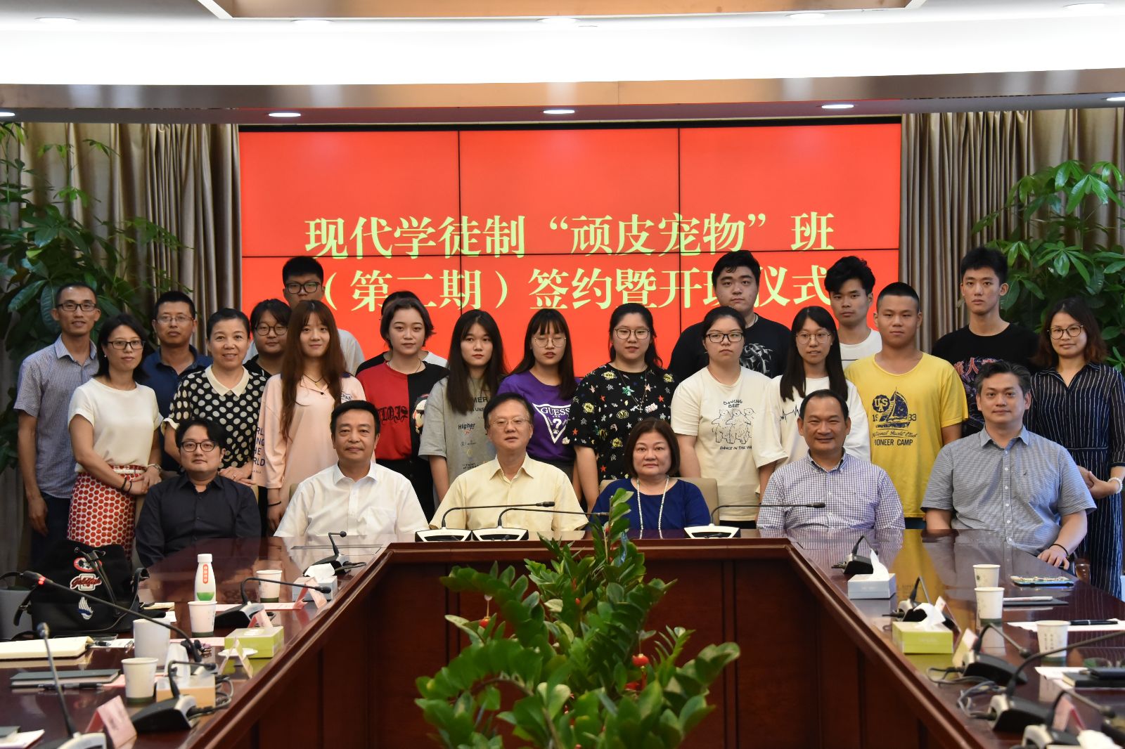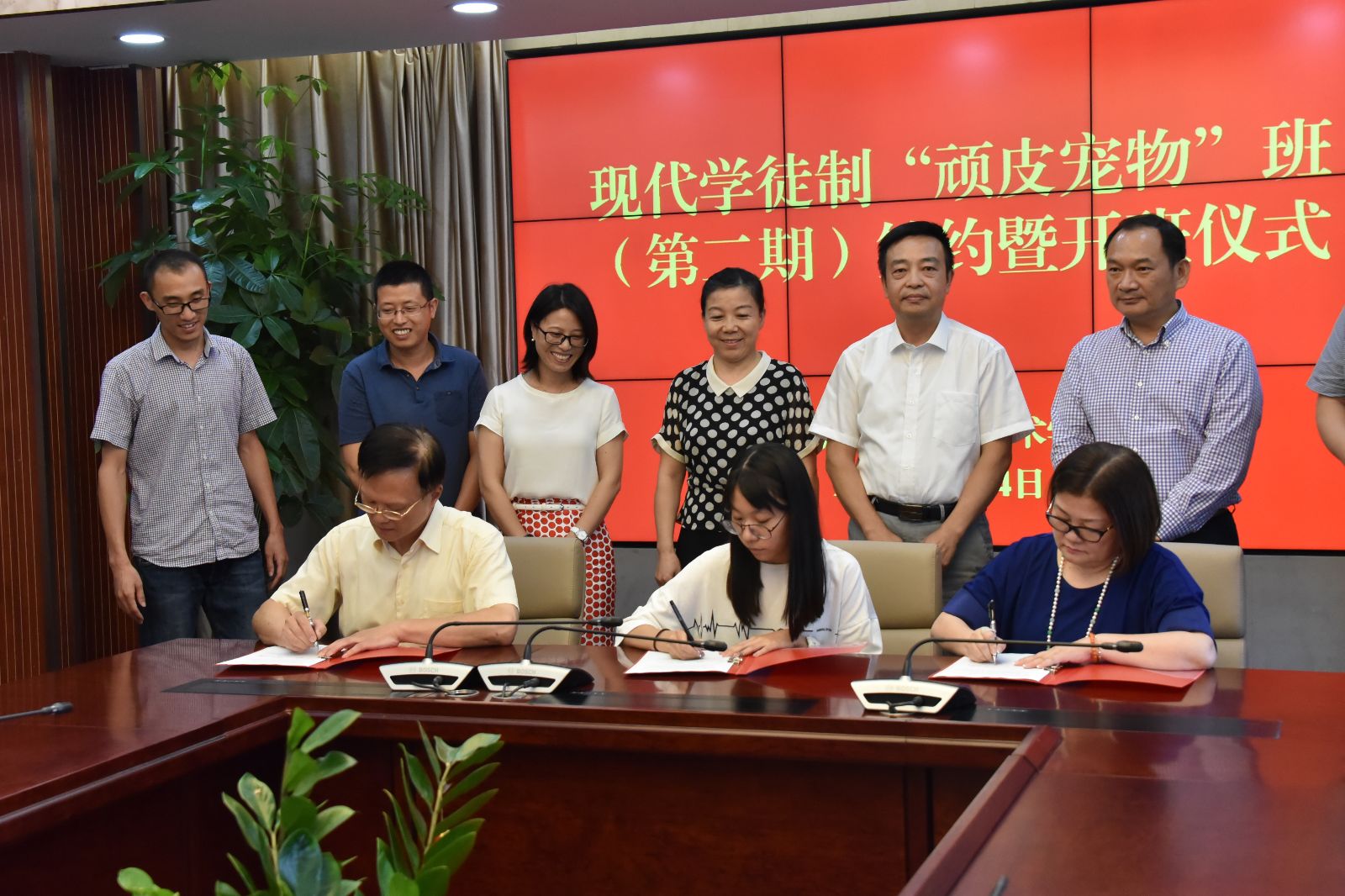 9月4日下午1点30分,上海农林职业技术学院与上海顽皮家族宠物有限公司在学院综合楼第一会议室举行了现代学徒制“顽皮宠物”班第二期签约暨开班仪式。上海顽皮家族宠物有限公司执行董事江碧秀、上海农林职业技术学院院长魏华、企业及学院相关部门负责人、部分教师代表及第二期“顽皮宠物”班全体学生参加了开班仪式。仪式由学院副院长谢锦平主持。