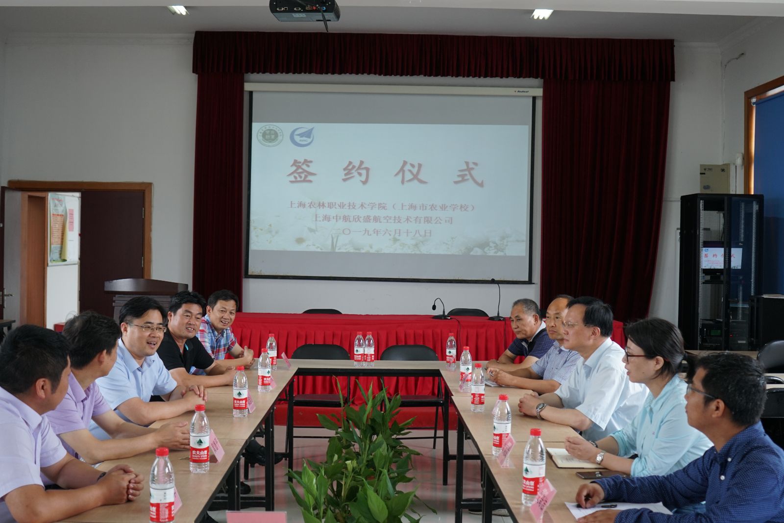 我校与上海中航欣盛航空技术有限公司合作组建的农业应用无人机生产教研基地今日签约建成,学院院长魏华、副院长王军亮,公司董事长何小良、总经理马宏,新浜镇党委委员组织部长梁宝山,上海土是宝农业专业合作社负责人何杨阳等参加签约挂牌仪式。仪式后校企共同就农业种植与保护技术、农业设施技术、农业智慧管理等相关领域进行座谈,达成了共同培养农业高技能人才,用高科技吸引人才、留住人才的共识。