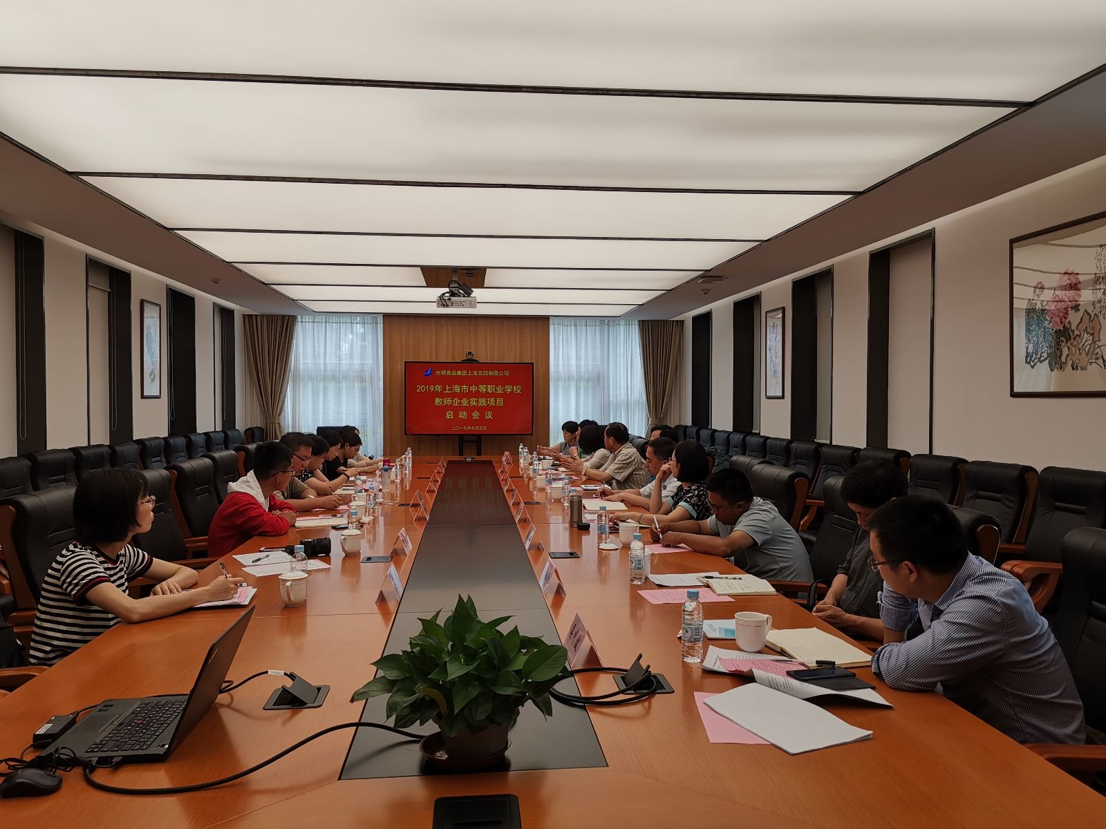 2019年7月3日,上海现代农业职教集团组织的“2019年教师企业实践项目”在光明集团上海五四有限公司(以下简称“五四公司”)正式开班。来自上海市农业学校、上海市城市建设工程学校、上海市工程技术管理学校、上海市环境学校、上海信息技术学校7名教师及来自云南、西藏地区部分学校的2名教师将共同在五四公司进行为期2个月的企业实践学习。开班仪式上,上海现代农业职教集团理事长魏华与五四公司党委书记、董事长黄超作致辞讲话。市督查专家组高康老师、五四集团顾巧英总农艺师分别就加强教学管理、提高教学质量提出了要求。另外五四公司和职教集团相关领导和带教教师也出席了开班仪式。会议由五四公司人力资源部经理赵来芳主持。