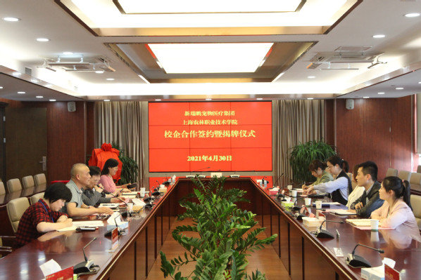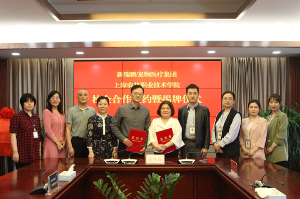 4月30日下午,我院与新瑞鹏宠物医疗集团有限公司(以下简称“新瑞鹏集团”)在第一会议室举行校企合作签约暨揭牌仪式。学院院长魏华、新瑞鹏集团顽皮家族总经理江碧秀、新瑞鹏集团相关领导及学院相关部门负责人参加。会议由校企合作办主任吴辉兴主持。