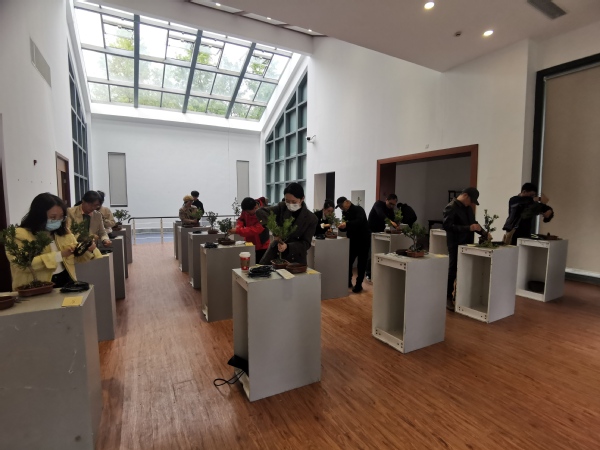 为大力弘扬传统园林文化艺术,健全技能型教师队伍培养,上海现代农业职业教育集团于11月12日在朵云轩艺术中心及上海植物园举办2023年上海现代农业职业教育集团园艺技艺观摩及盆景竞赛活动,本次盆景技艺制作类竞赛旨在弘扬工匠精神、以比赛促培养,提高集团内教师及单位技工的专业技能,打造一支“能教会赛”的高素质“双师型”教师及技师队伍。上海现代农业职业教育集团秘书长刘秀云出席,来自上海市10余所相关专业院校的30余名教师及技工代表参加,活动特邀请花艺大师朱迎迎、盆景大师程晓华、赵桂平等亲临指导。
